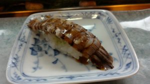 カワハギですが、数量限定で肝の握りをお出ししています。